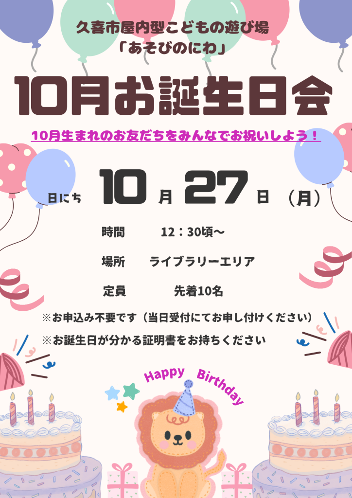 10月のお誕生日会は、10月27日(月)に開催予定です(^^♪